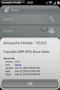 NOTE: New application name space, no longer using com.palm.ampachemobile, the API is mature enough to move to com.ampachemobile. This means 0.7.0 and 0.8.0 can coexist. Transfer account settings and delete old app.